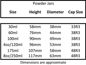 Powder Jars Come In Over 30 Standard Colours: