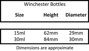 Winchester Bottles are a simple container. A wider range of tops are found in the Dropper range. We can guarantee quick delivery of Winchester bottles. Winchester Bottles can be supplied in different sizes and Amber Glass colours. Require special treatment if required coloured, costing more than droppers.Not suitable for Printing. Clear Glass bottles supplied in small or large quantities.
